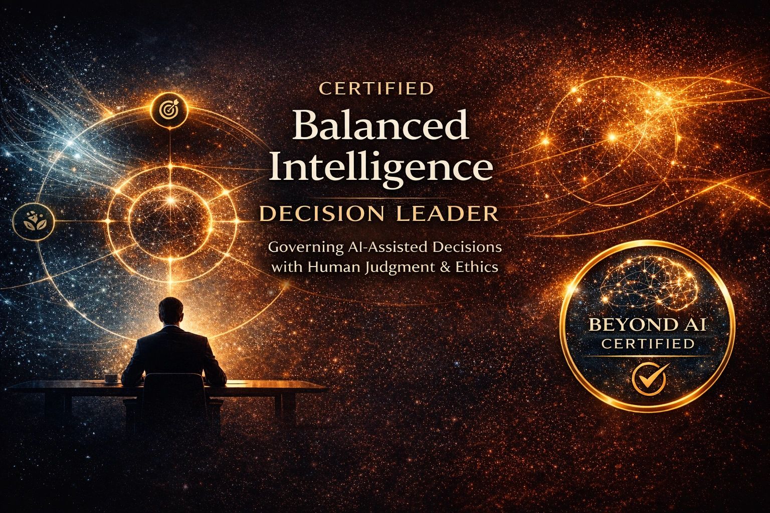 Being certified by The Wisdom Company as a Balanced Intelligence Decision Leader means you are recognized as a human authority capable of governing AI-assisted decisions with clarity, accountability, and systemic wisdom — in a world where intelligence alone is not enough.